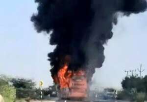 (जोधपुर) जैसलमेर में चलती बस में आग लगने से 15 की मौत की आशंका,16 झुलसे