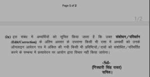 (ix) इस संबंध में अभ्यर्थियों को सूचित किया जाता है कि उक्त संशोधन / परिवर्तन (Edit/Correction) के अंतिम अवसर के उपरान्त किसी भी दशा में अभ्यर्थी को उनके ऑनलाइन आवेदन पत्र में अंकित की गयी किसी भी प्रविष्टियों/दावों को संशोधित/परिवर्तित करने के सम्बन्ध में प्रत्यावेदन पर आयोग द्वारा विचार नहीं किया जायेगा।